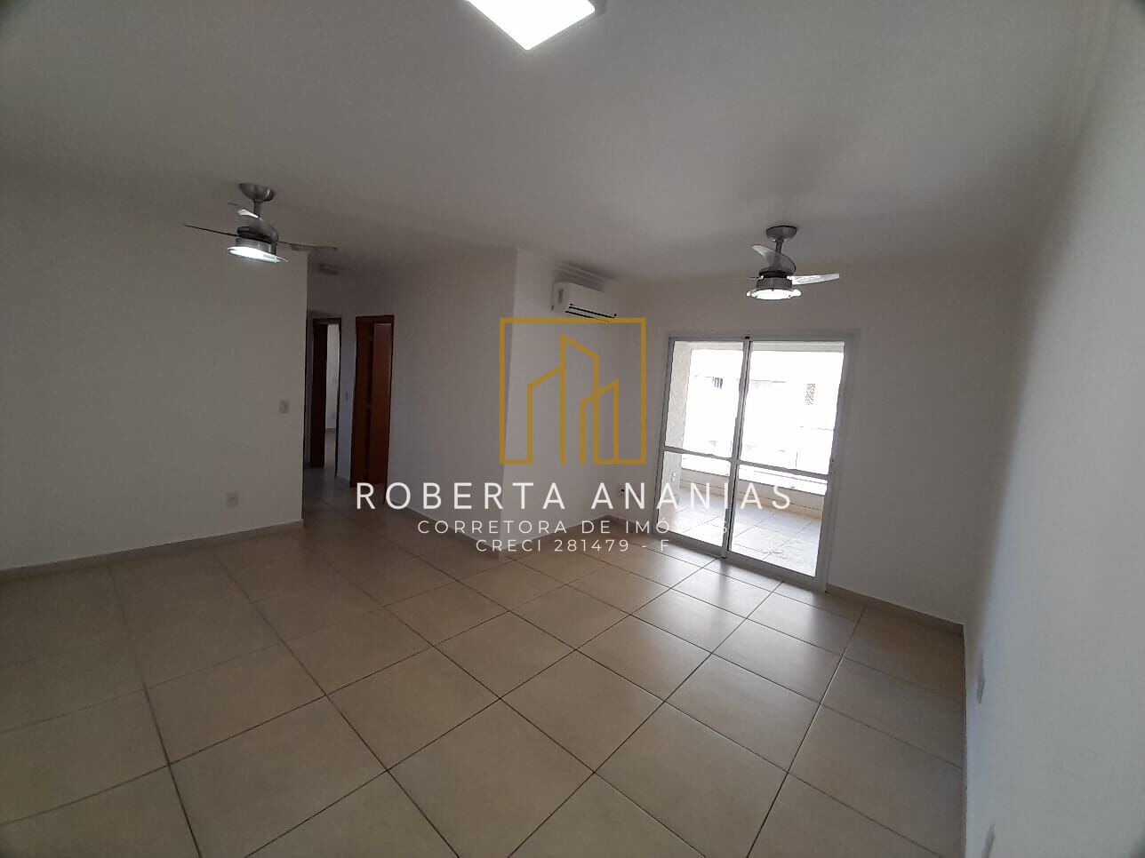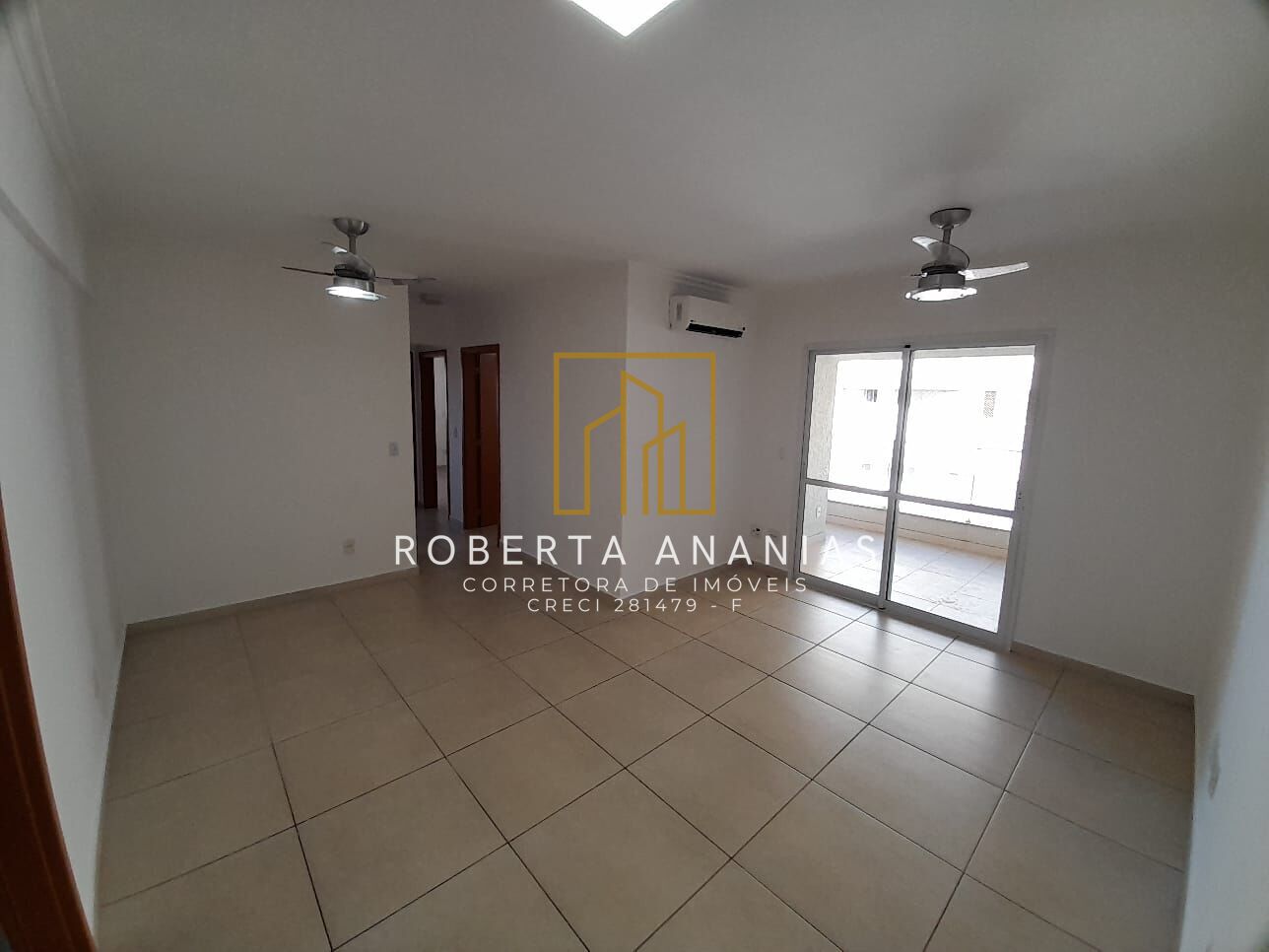 Sala dois ambientes com ventilador de teto e ar condicionado.