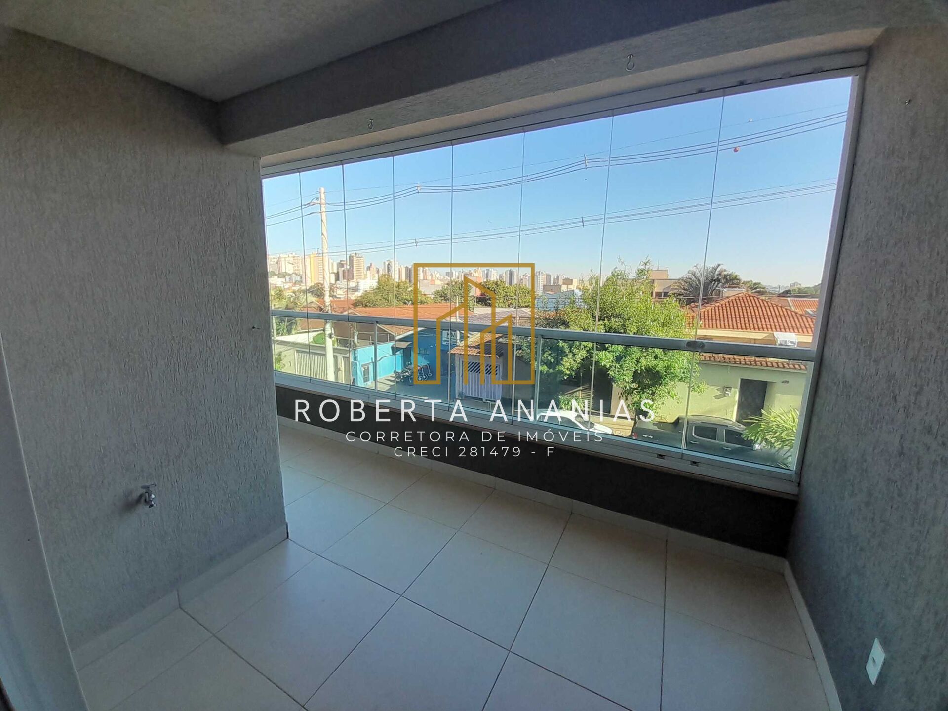 Sacada ampla toda fechada com cortina de vidro